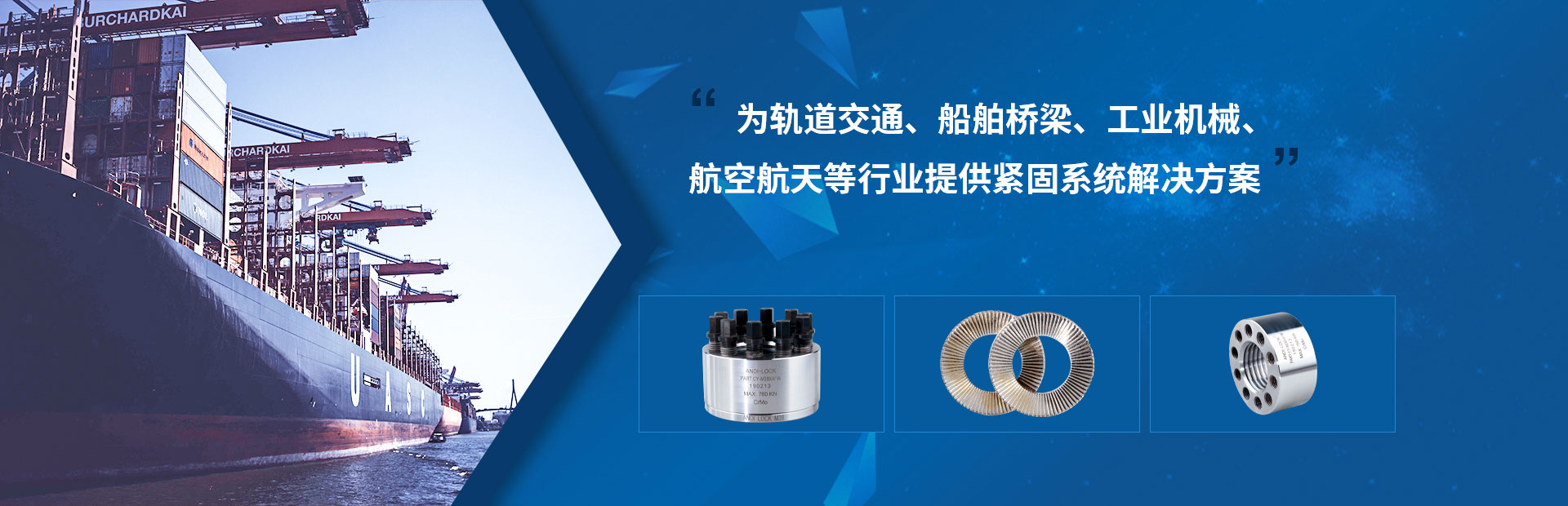 大連安迪機械設(shè)備有限公司位于美麗的濱海城市大連,是一個集科、工、貿(mào)為一體的全球性供應商,自公司1996年成立以來,一致奉行"以質(zhì)量求生存、以科技求進步、以客戶求市場"的生產(chǎn)和經(jīng)營理念,公司自主研發(fā)、專業(yè)生產(chǎn)防松墊圈、止退墊圈、雙疊自鎖墊圈、din25201、高鐵聲屏障墊圈、超級螺栓,頂推螺母,多級頂推張緊器,螺母型張緊器等精密機械。并同時代理銷售國內(nèi)外各大知名品牌緊固件。